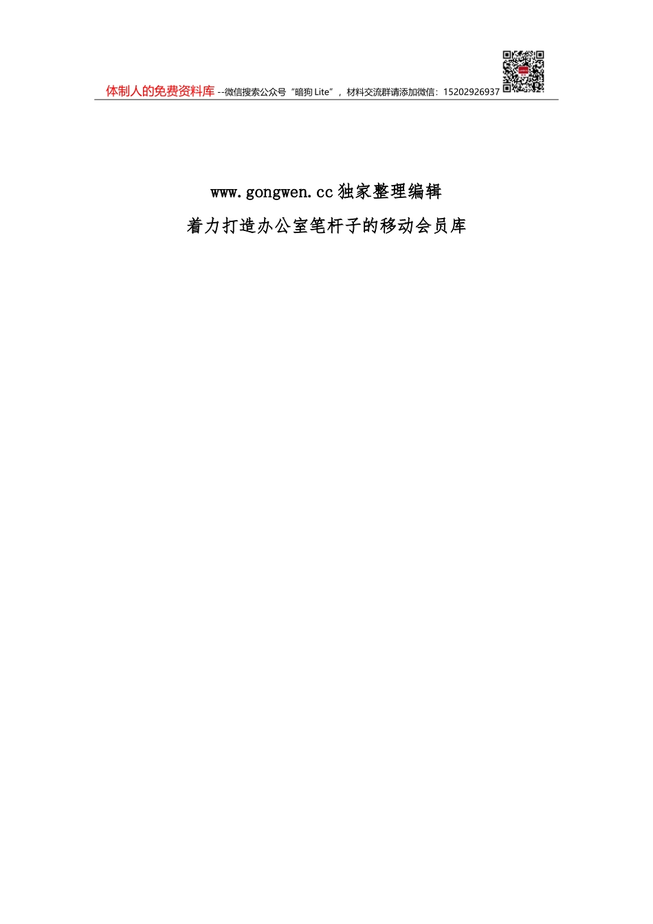 体制人的免费资料库 --微信搜索公众号“暗狗 Lite”,材料交流群请添加微信:15202926937www.gongwen.cc 独家整理编辑着力打造办公室笔杆子的移动会员库体制人的免费资料库 --微信搜索公众号“暗狗 Lite”,...