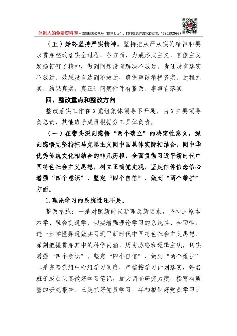 体制人的免费资料库 --微信搜索公众号“暗狗 Lite”,材料交流群请添加微信:15202926937史学习教育专题民主生活会整改落实方案根据中央和省、市要求,为切实抓好 2021 年度 XX 党组党史学习教育专题民主生...