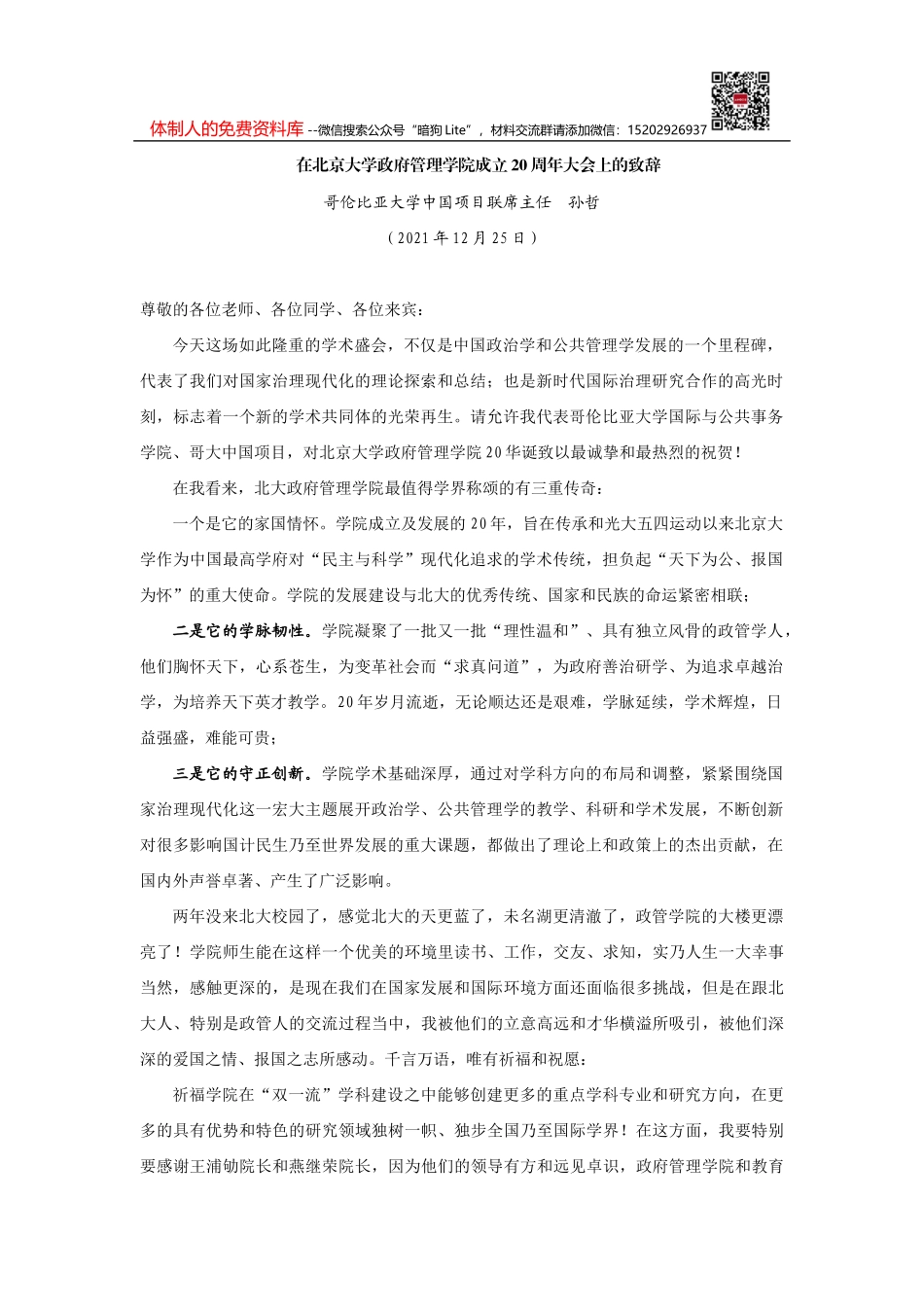体制人的免费资料库 --微信搜索公众号“暗狗 Lite”,材料交流群请添加微信:15202926937体制人的免费资料库 --微信搜索公众号“暗狗 Lite”,材料交流群请添加微信:15202926937在北京大学政府管理学院成立...
