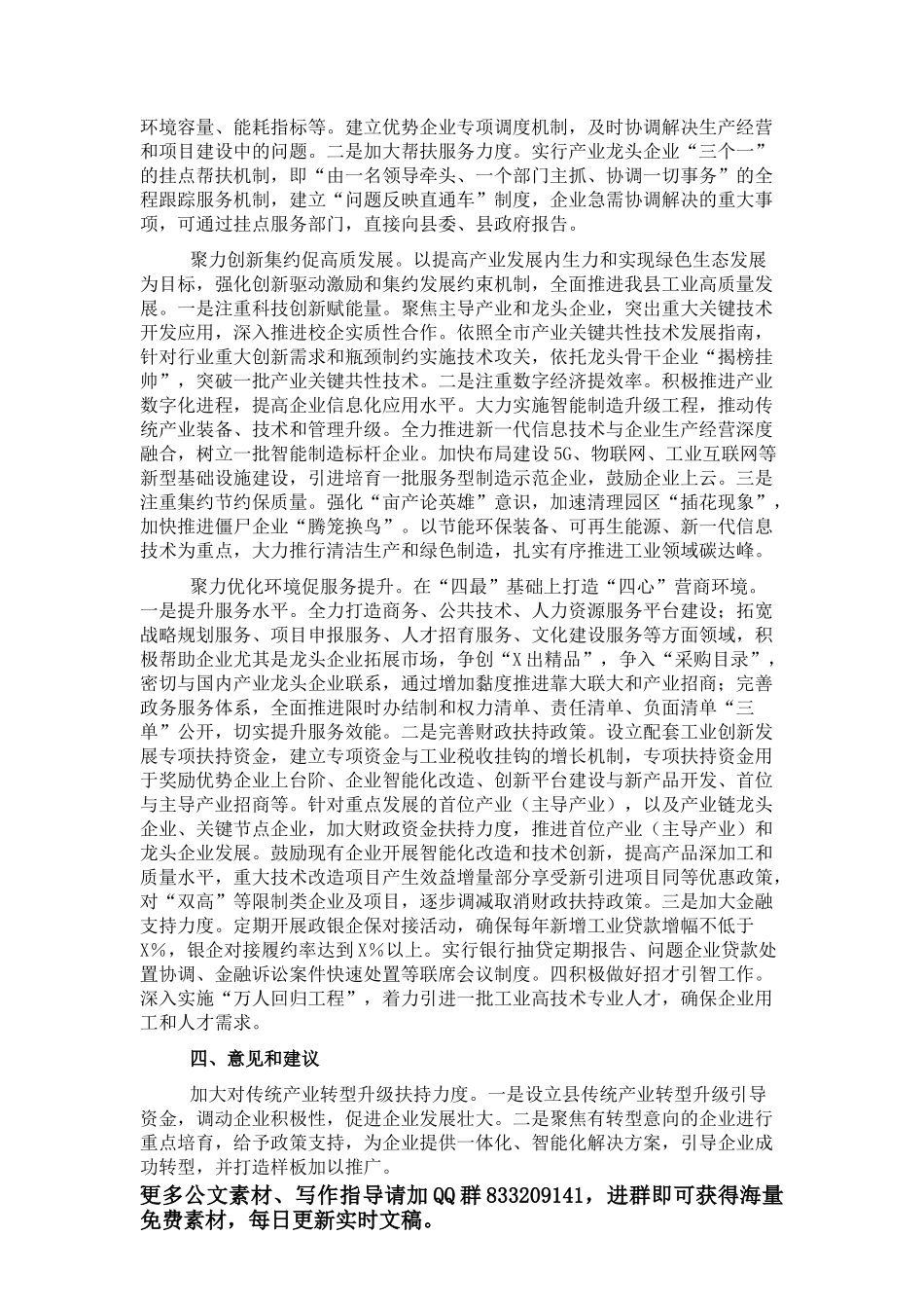 1更多公文素材、写作指导请加 QQ 群 833209141,进群即可获得海量免费素材,每日更新实时文稿。 我局深入贯彻落实省、市、县党代会精神,全力打好工业创新发展强攻战,认真分析今年工业运行情况,明确存在的...