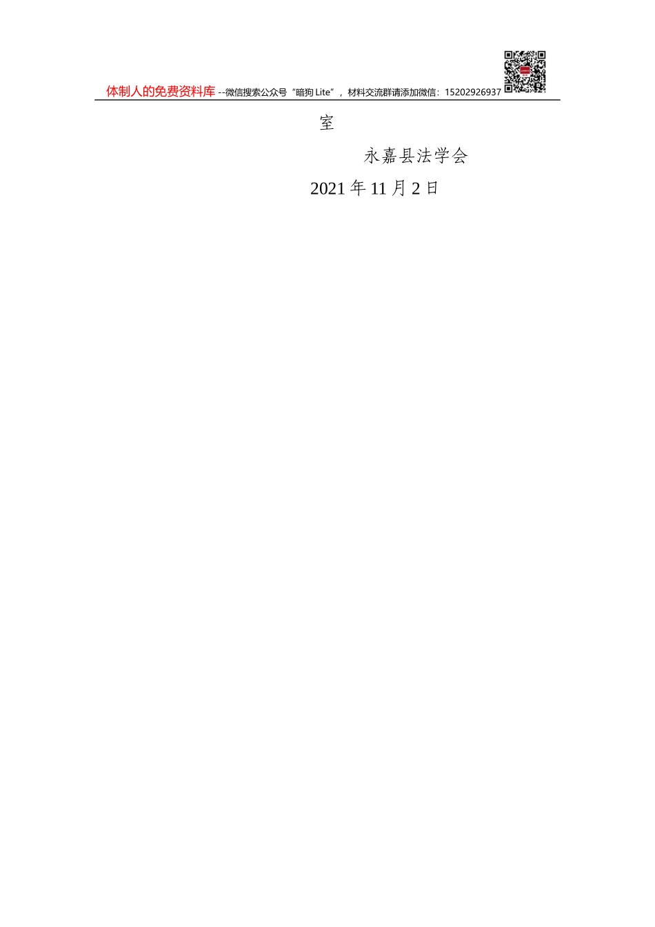 体制人的免费资料库 --微信搜索公众号“暗狗 Lite”,材料交流群请添加微信:15202926937中共永嘉县委全面依法治县委员会办公室 永 嘉 县 法 学 会永委法办〔2021〕10 号关于做好习近平法治思想集中宣讲...