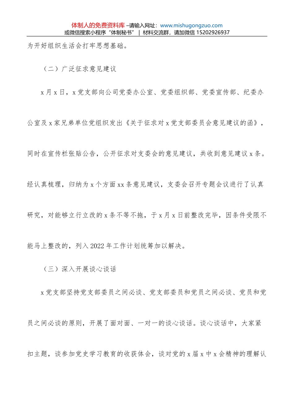 体制人的免费资料库 –请输入网址:www.mishugongzuo.com或微信搜索小程序“体制秘书” | 材料交流群,请加微信 15202926937公司党支部关于 2021 年度组织生活会召开情况的报告x 党委:按照公司党委关于召...