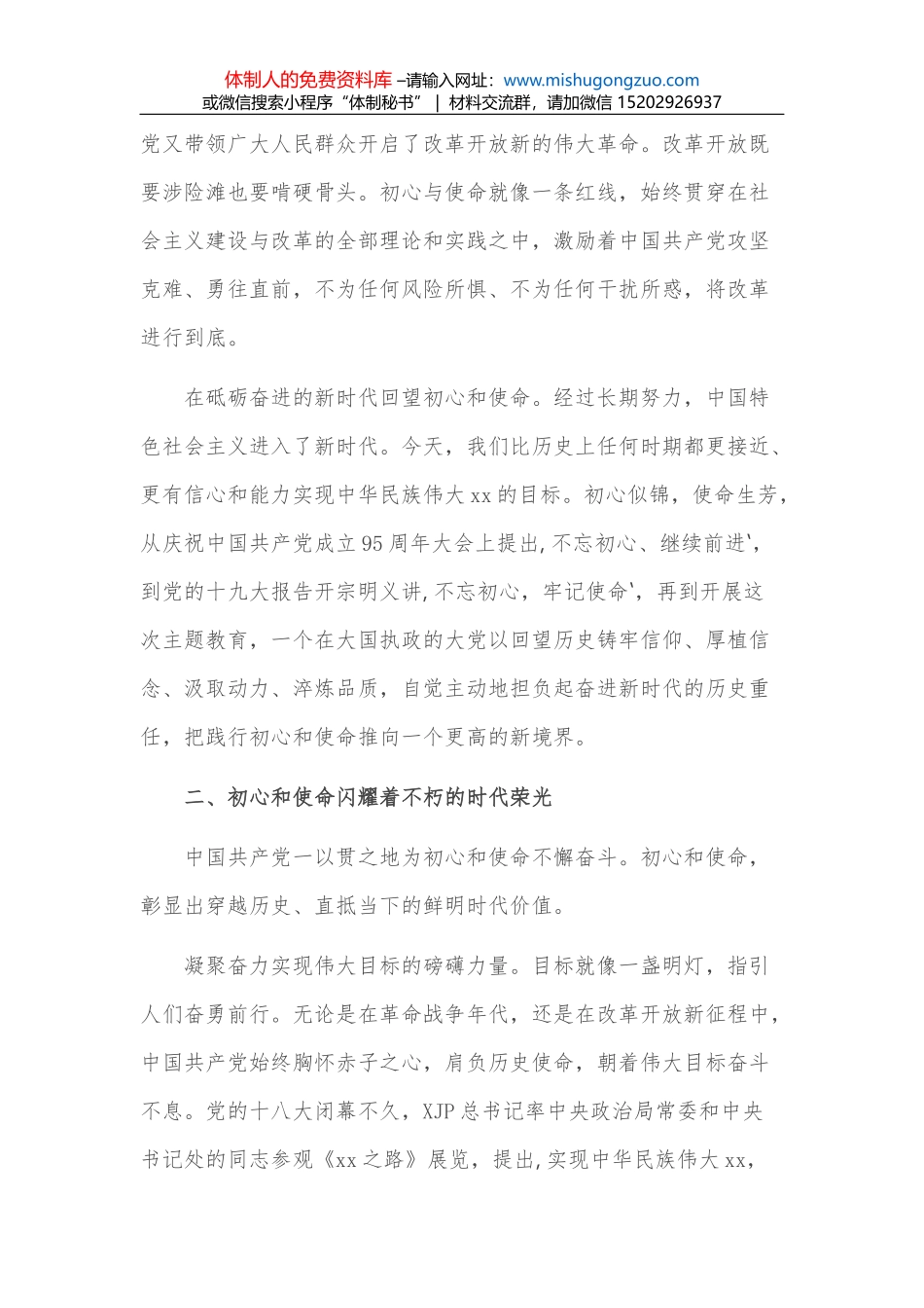 体制人的免费资料库 –请输入网址:www.mishugongzuo.com或微信搜索小程序“体制秘书” | 材料交流群,请加微信 15202926937主题党日党课讲稿:初心使命的历史逻辑与时代价值XJP 总书记强调: 为中国人民谋...