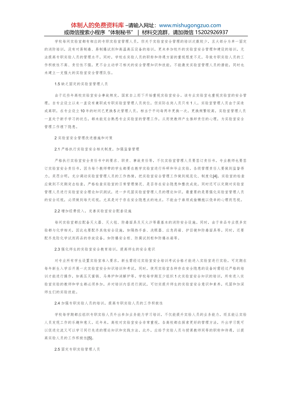 体制人的免费资料库 –请输入网址:www.mishugongzuo.com或微信搜索小程序“体制秘书” | 材料交流群,请加微信 15202926937地方高校食品科学与工程专业实验室安全管理食品科學与工程专业实验室不仅是培养食...