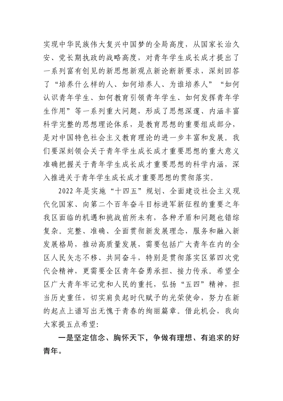 全区纪念共青团成立 100 周年暨五四运动 103 周年暨表彰大会上的讲话同志们,青年朋友们:今天,我们在这里隆重集会,纪念共青团成立 100 周年暨五四运动 103 周年,表彰在全区各条战线上作出突出贡献的...