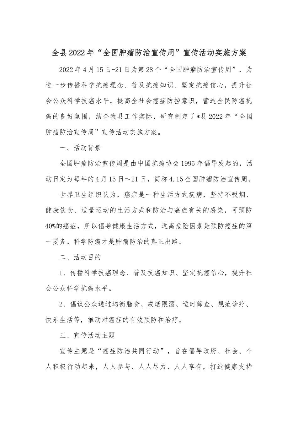 全县 2022 年“全国肿瘤防治宣传周”宣传活动实施方案2022 年 4 月 15 日-21 日为第 28 个“全国肿瘤防治宣传周”,为进一步传播科学抗癌理念、普及抗癌知识、坚定抗癌信心,提升社会公众科学抗癌水平...
