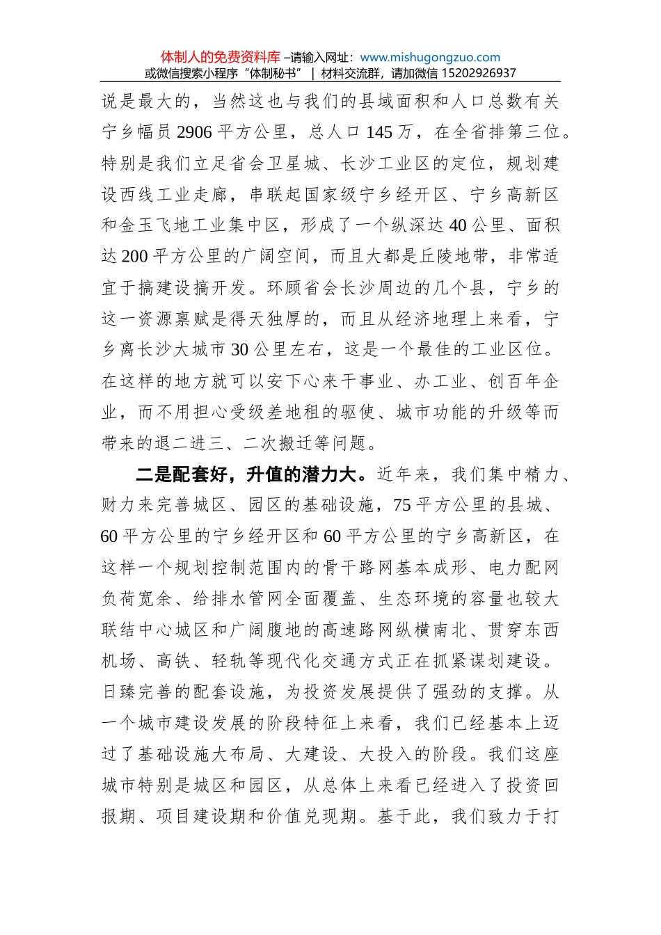体制人的免费资料库 –请输入网址:www.mishugongzuo.com或微信搜索小程序“体制秘书” | 材料交流群,请加微信 15202926937凝聚起建设现代化新宁乡的强大力量——市委书记在宁乡市重大项目推介暨重点项目集...