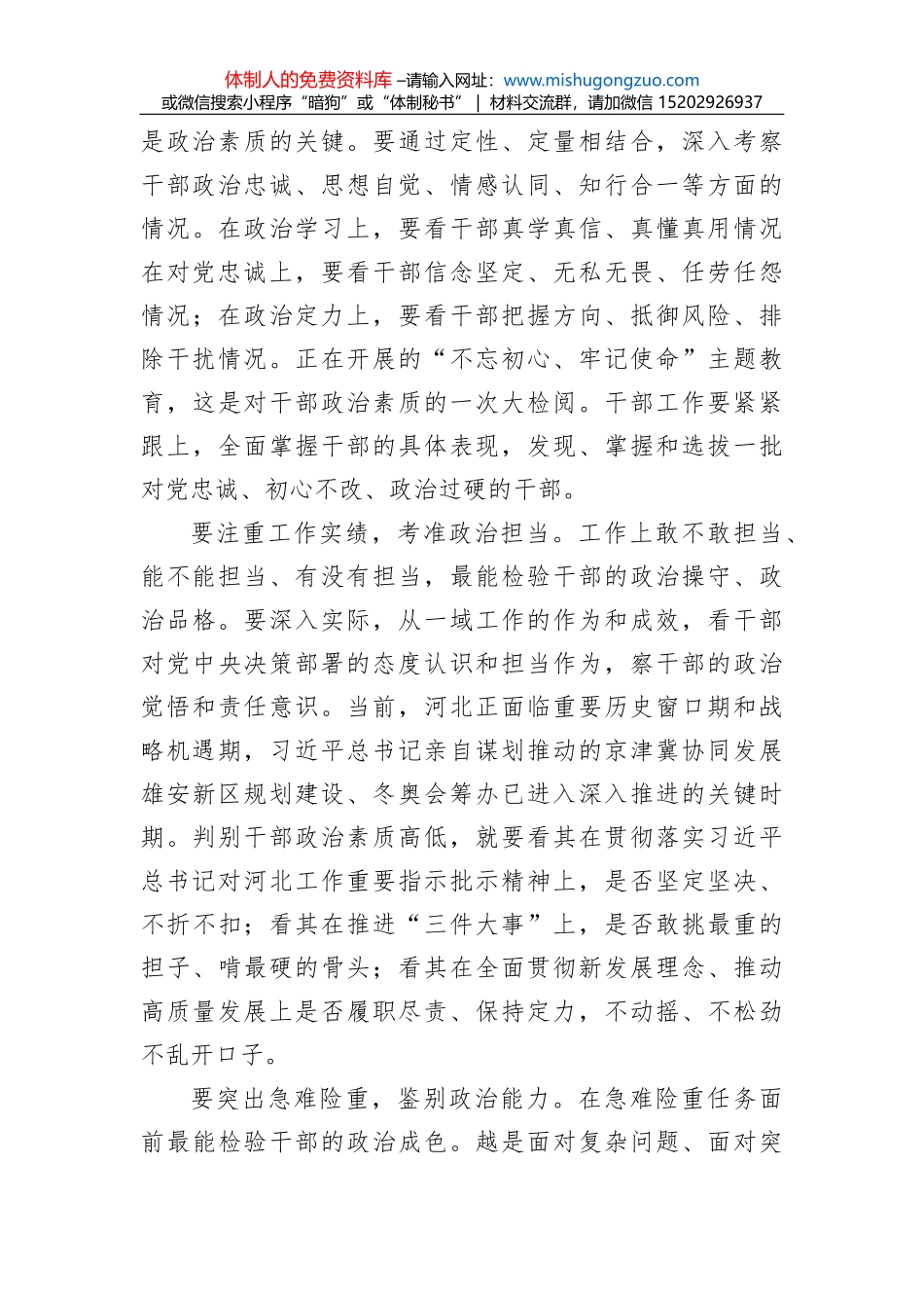 体制人的免费资料库 –请输入网址:www.mishugongzuo.com或微信搜索小程序“暗狗”或“体制秘书” | 材料交流群,请加微信 15202926937考准考实干部政治素质梁田庚来源:党建研究网新修订的《党政领导干部选...