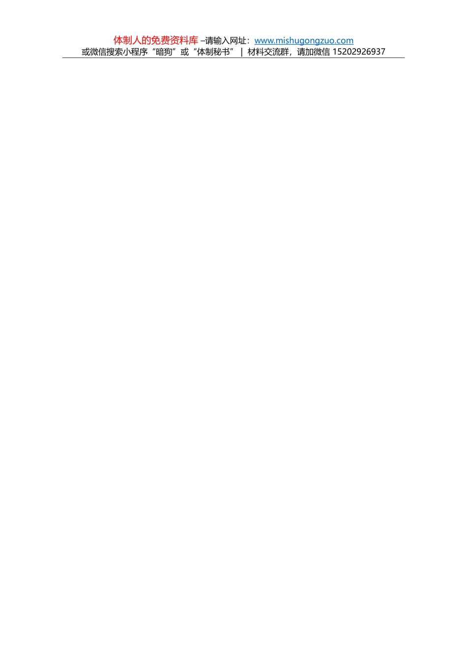 体制人的免费资料库 –请输入网址:www. mishugongzuo .com 或微信搜索小程序“暗狗”或“体制秘书” | 材料交流群,请加微信 15202926937用心干,别用心眼干“干部有一个事,就是干”“用心干,别用心眼...
