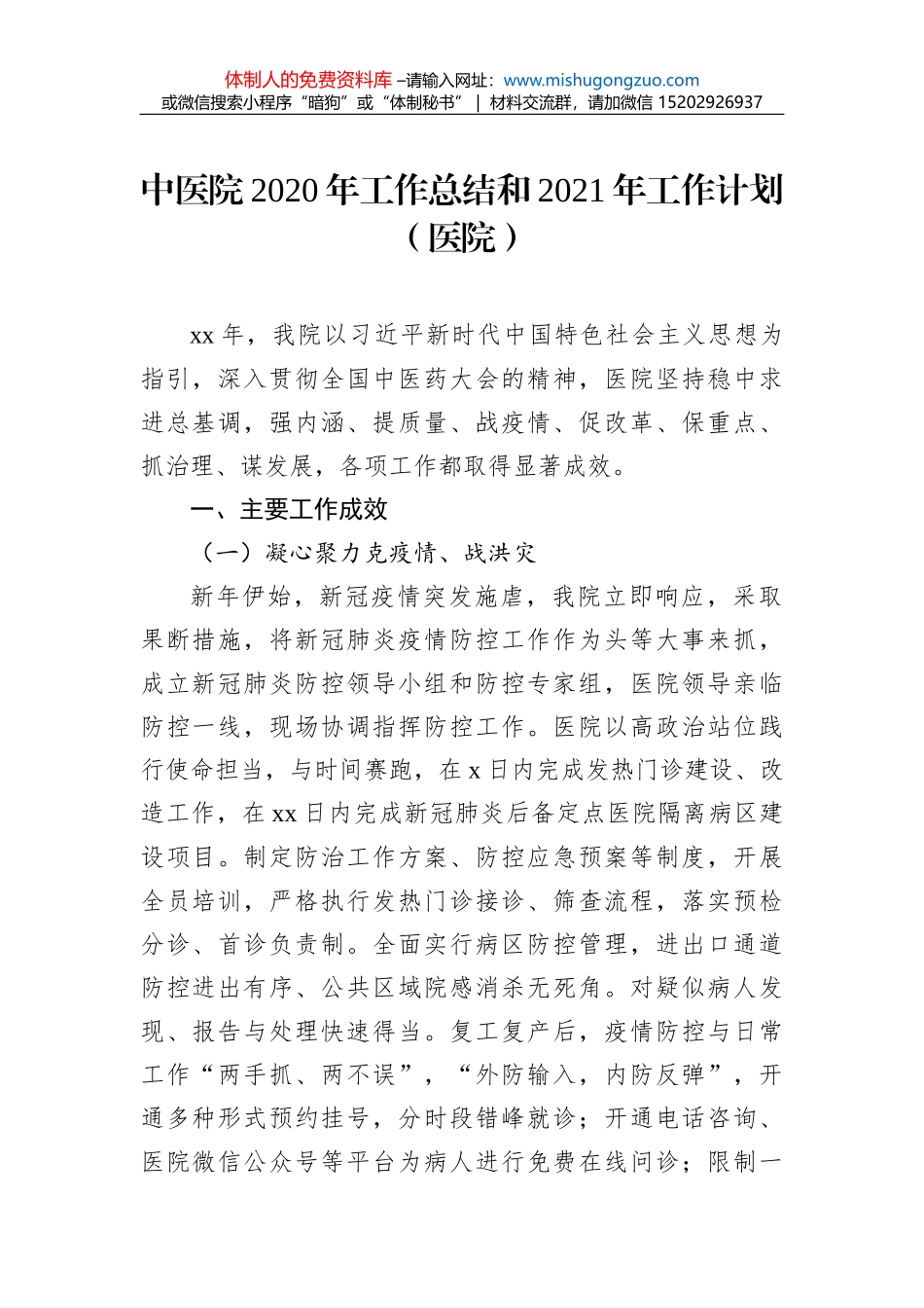 体制人的免费资料库 –请输入网址:www.mishugongzuo.com或微信搜索小程序“暗狗”或“体制秘书” | 材料交流群,请加微信 15202926937人民医院 2021 年工作总结和 2022 年工作安排汇编(4 篇)(医院)...