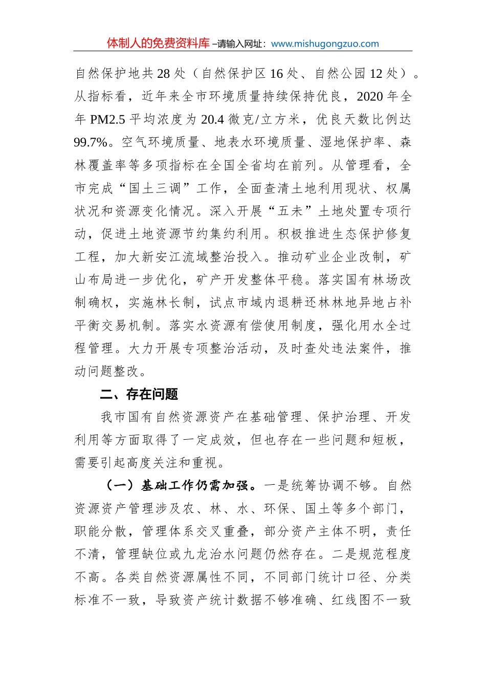 体制人的免费资料库 –请输入网址:www.mishugongzuo.com体制人的免费资料库 –请输入网址:www.mishugongzuo.com关于黄山市国有自然资源资产管理情况的调研报告2021 年 07 月 05 日 黄山市预算工委根据...