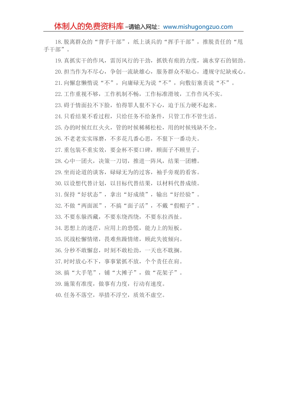 体制人的免费资料库 –请输入网址:www.mishugongzuo.com体制人的免费资料库 –请输入网址:www.mishugongzuo.com1.重眼前轻长远,造盆景刷眼球,这是政绩片面化;重显绩轻潜绩,追求排名位次,这是政绩短视化...