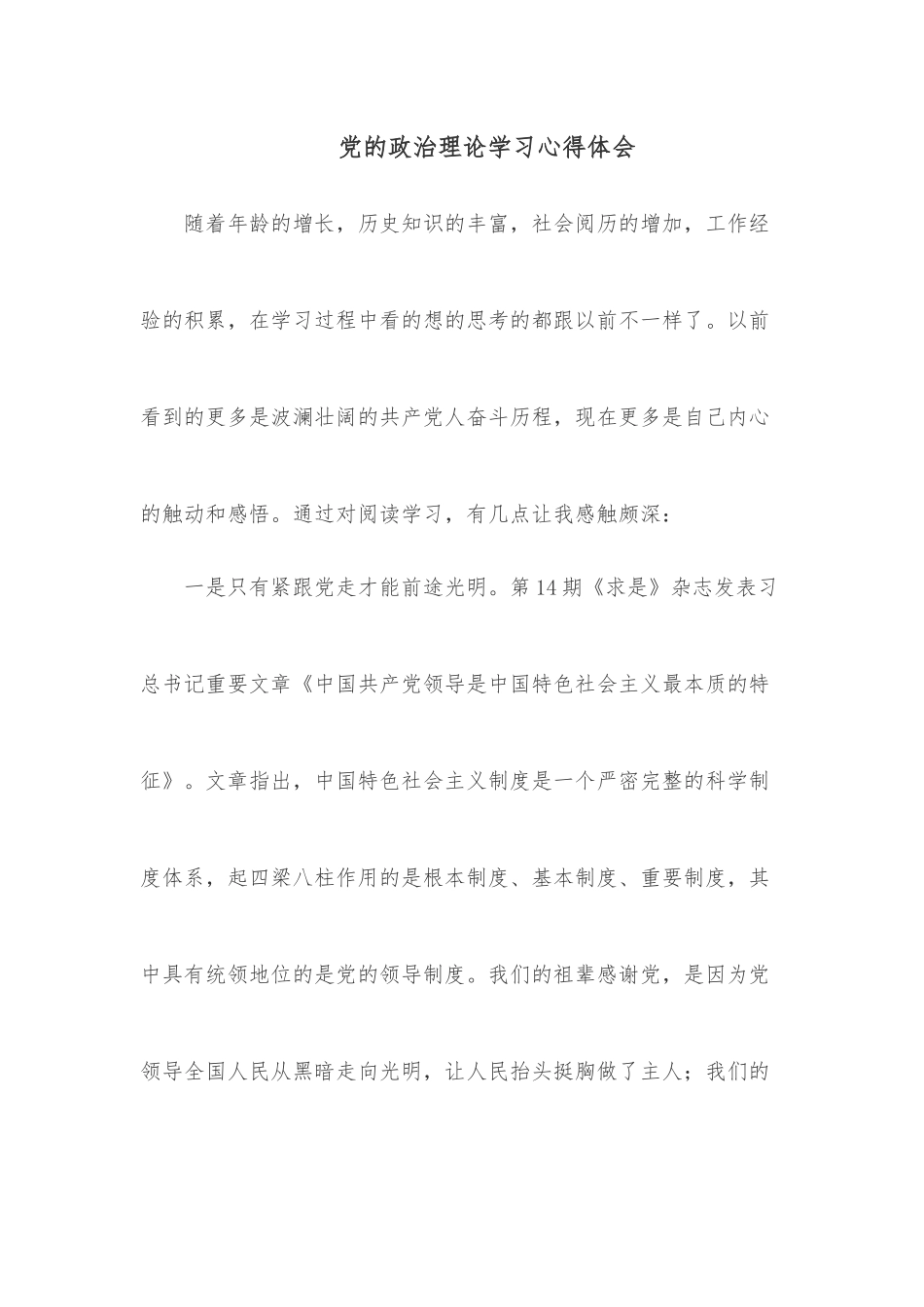 党的政治理论学习心得体会随着年龄的增长,历史知识的丰富,社会阅历的增加,工作经验的积累,在学习过程中看的想的思考的都跟以前不一样了。以前看到的更多是波澜壮阔的共产党人奋斗历程,现在更多是自己内心的...