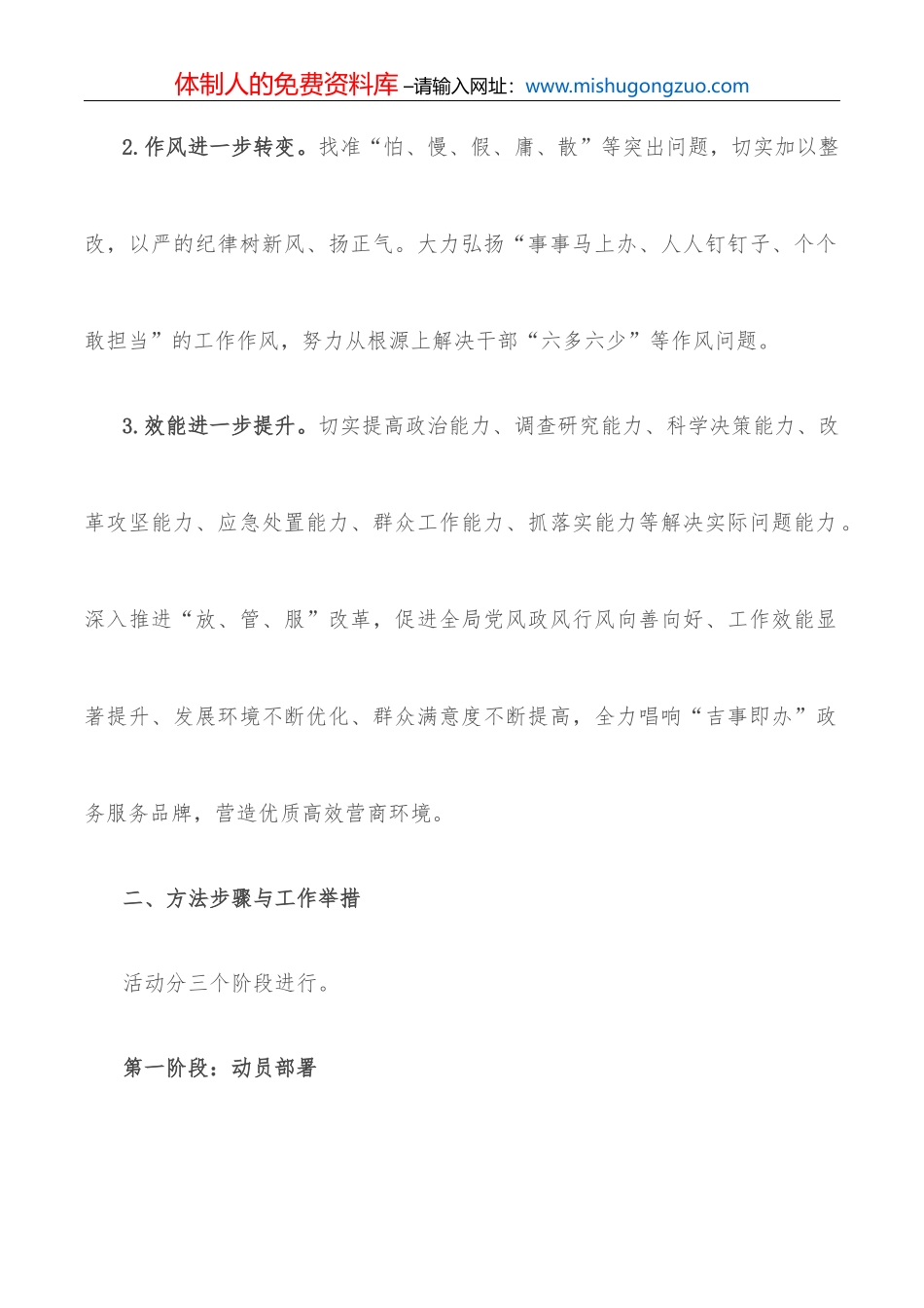 体制人的免费资料库 –请输入网址:www.mishugongzuo.com体制人的免费资料库 –请输入网址:www.mishugongzuo.com关于开展“思想大解放、作风大整顿、效能大提升”活动实施方案为深入贯彻落实县第十八次党代会...