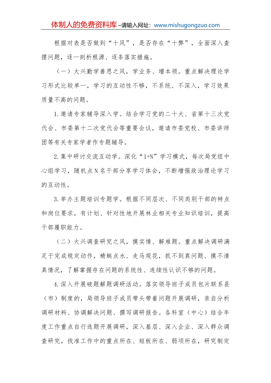 体制人的免费资料库 –请输入网址:www.mishugongzuo.com体制人的免费资料库 –请输入网址:www.mishugongzuo.com兴“十风”治“十弊”转变干部作风保障高质量发展工作方案(附:兴“十风”治“十弊”专题组织...