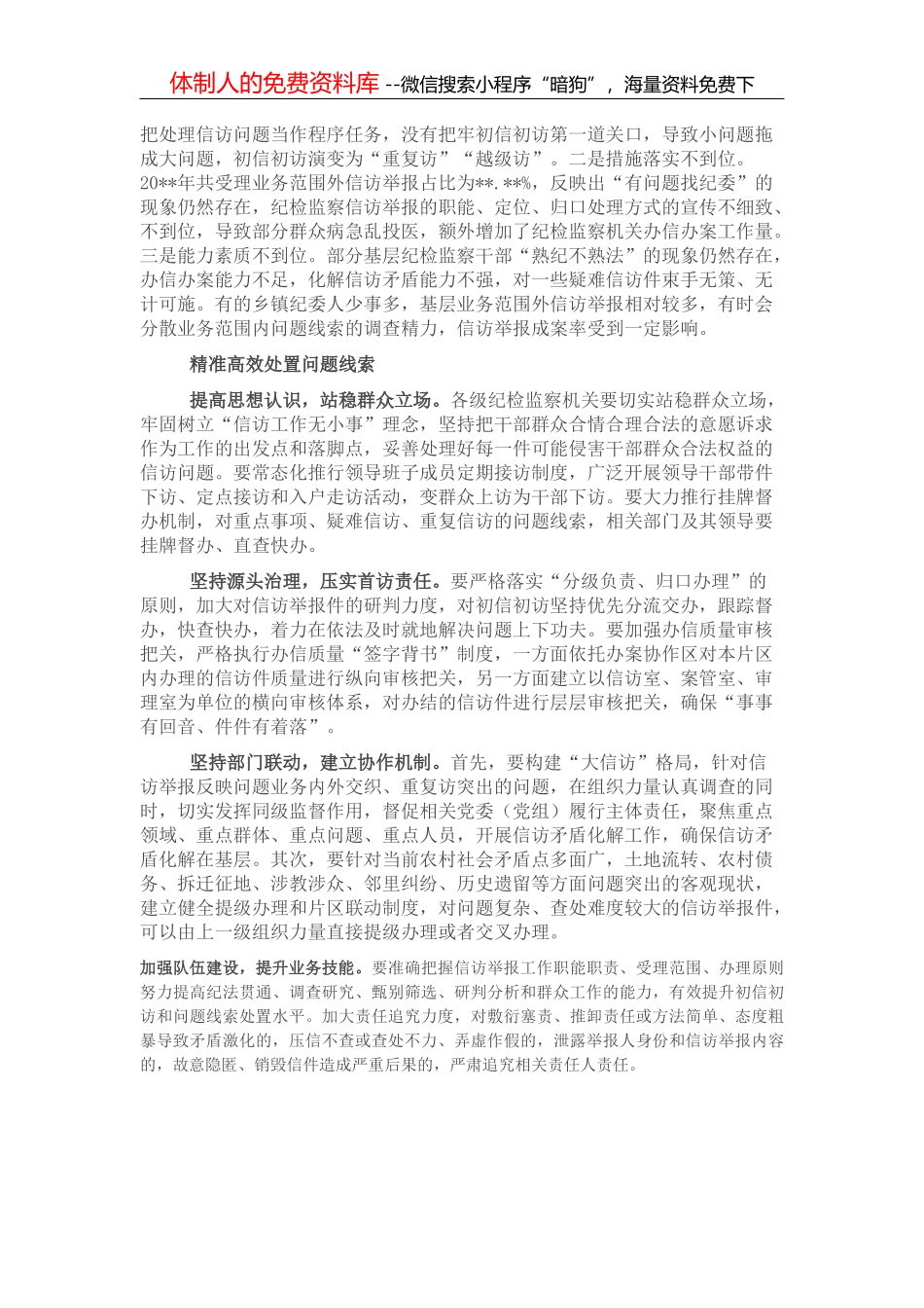 体制人的免费资料库 --微信搜索小程序“暗狗”,海量资料免费下信访举报工作是党和群众的连心桥,是依靠群众开展反腐败斗争的主渠道,是观察分析一个地方或单位政治生态和党风廉政状况的晴雨表,对开展党风廉政...