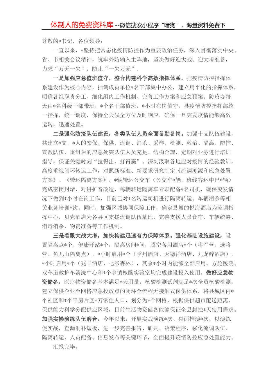体制人的免费资料库 --微信搜索小程序“暗狗”,海量资料免费下体制人的免费资料库 --微信搜索小程序“暗狗”,海量资料免费下尊敬的*书记,各位领导:一直以来,*坚持把常态化疫情防控作为重要政治任务,深入...