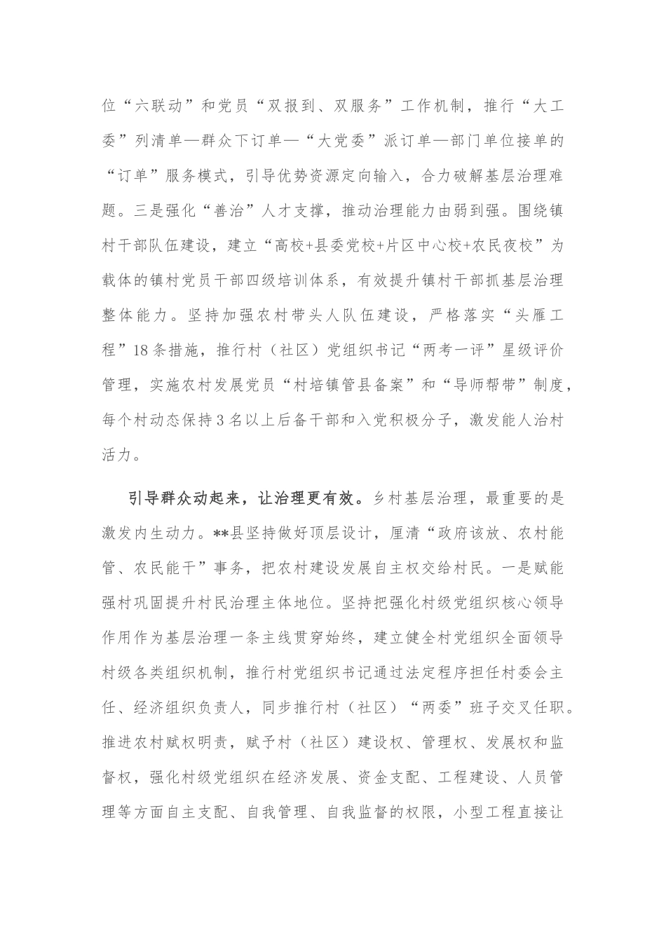 基层治理培训班发言材料省第**次党代会擘画了**未来五年发展宏伟蓝图,强调要全面推进乡村振兴,健全党组织领导的自治、法治、德治相结合的乡村治理体系,建设井然有序又生机勃勃的善治乡村。围绕建设“善治乡村...
