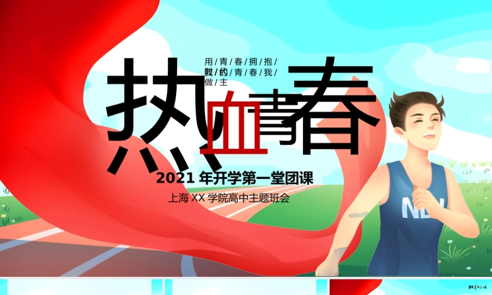 热 春青血2021 年开学第一堂团课用 / 青 / 春 / 拥 / 抱 /时 / 代我 / 的 / 青 / 春 / 我 /做 / 主上海 XX 学院高中主题班会2021 年是中国共产党成立 100 周年是“十四五”开局之年...