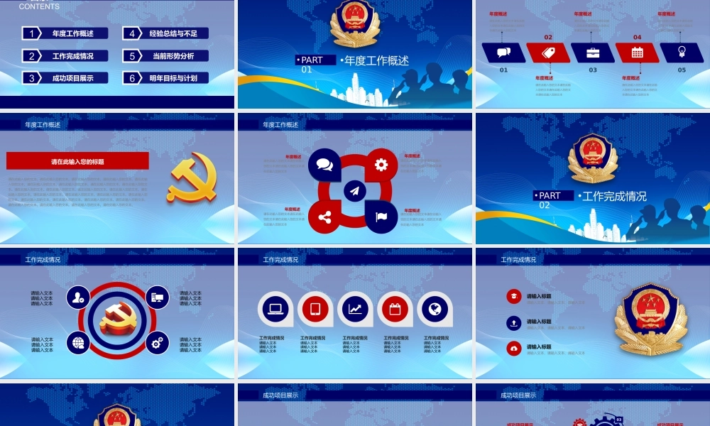 公安 / 消防部门工作汇报汇报时间: 201X 汇报人: XXXX立警为公 执法为民年度工作概述1工作完成情况2成功项目展示3目录CONTENTS经验总结与不足4当前形势分析5明年目标与计划6•年度工作概述•PART 01年度...