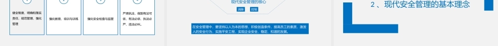 目录CONTENTS现代安全管理的基本概念01 现代安全管理的基本理念02 现代安全管理主要对象、方法与对策03 现代安全管理的六大管理体系04 01 现代安全管理的基本概念现代安全管理的基本概念安全在生产活动中免...