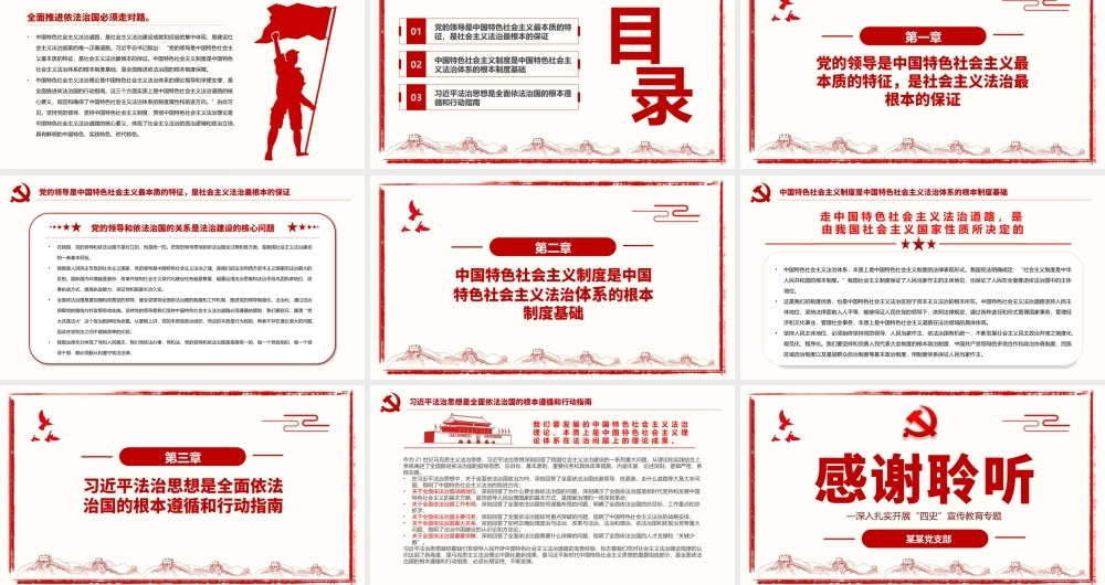 全面深入理解中国特色社会主义法治道路—深入扎实开展“四史”宣传教育专题某某党支部前言导读全面推进依法治国必须走对路。•中国特色社会主义法治道路,是社会主义法治建设成就和经验的集中体现,是建设社会主...