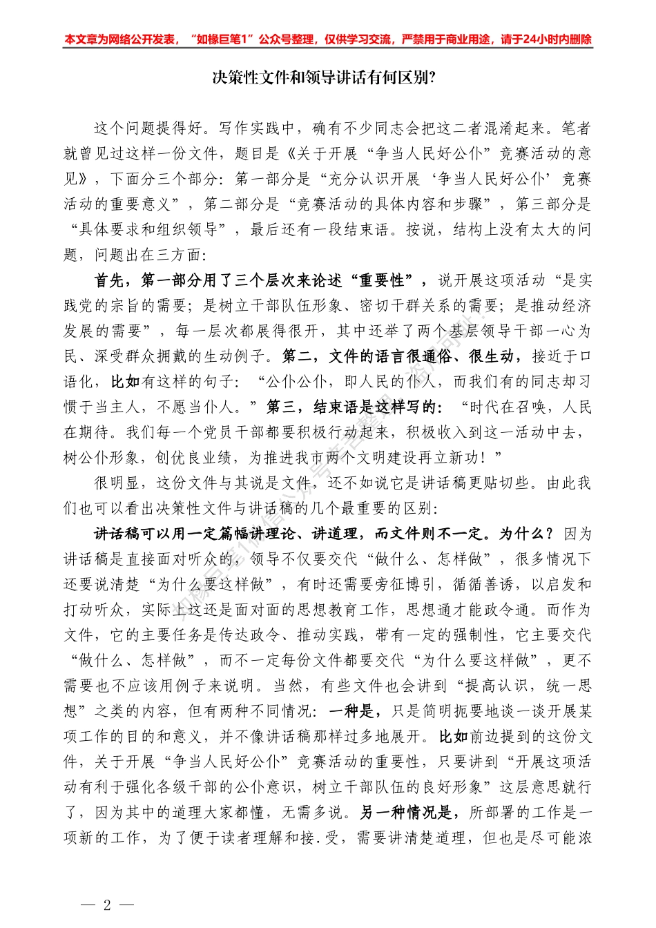 “日拱一卒”系列№51决策性文件和领导讲话有何区别?——如椽巨笔1公众号整理_第2页