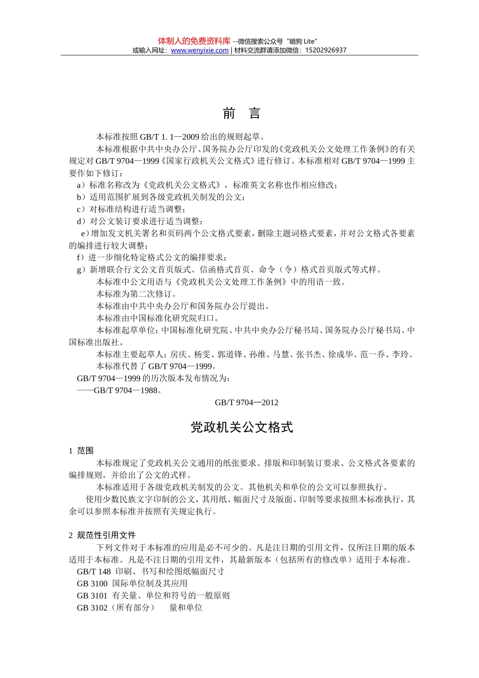 体制人的免费资料库 --微信搜索公众号“暗狗 Lite”或输入网址:www.wenyixie.com | 材料交流群请添加微信:15202926937党政机关公文格式国家标准(2012 年最新版)中 华 人 民 共 和 国 国 家 标...
