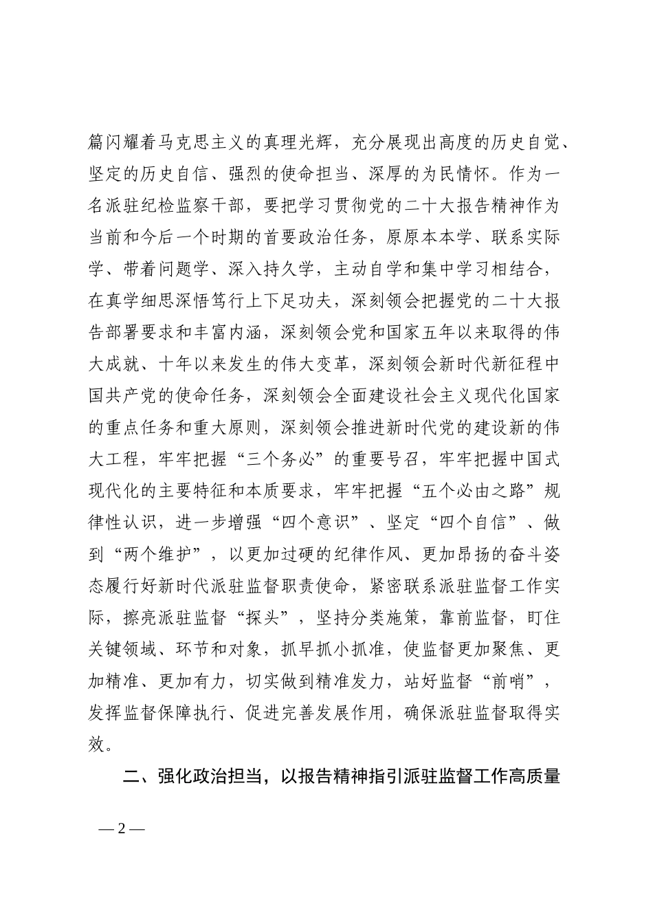 派驻纪检监察干部学习党的二十大报告精神心得体会202210_第2页