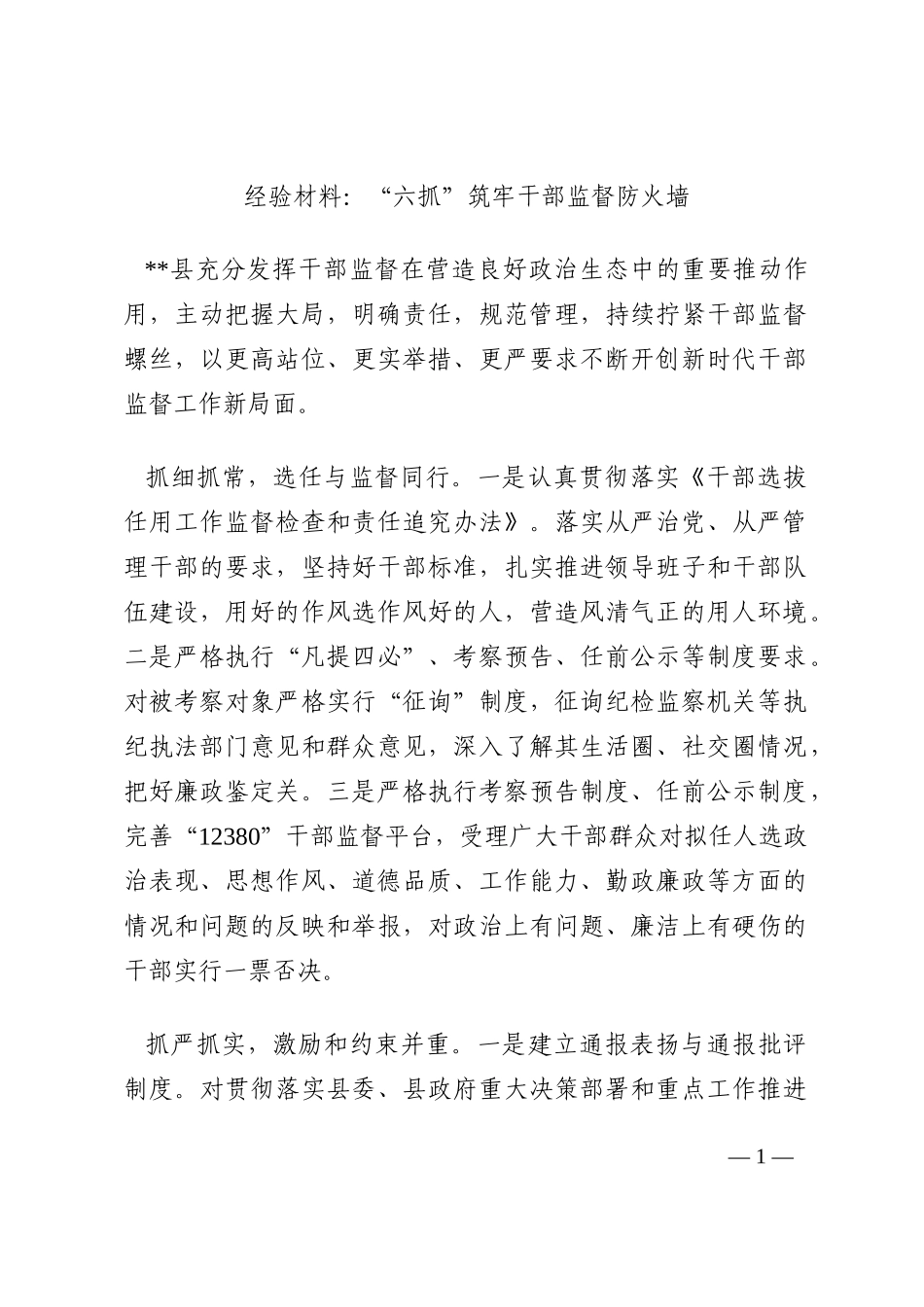 经验材料:“六抓”筑牢干部监督防火墙202210_第1页