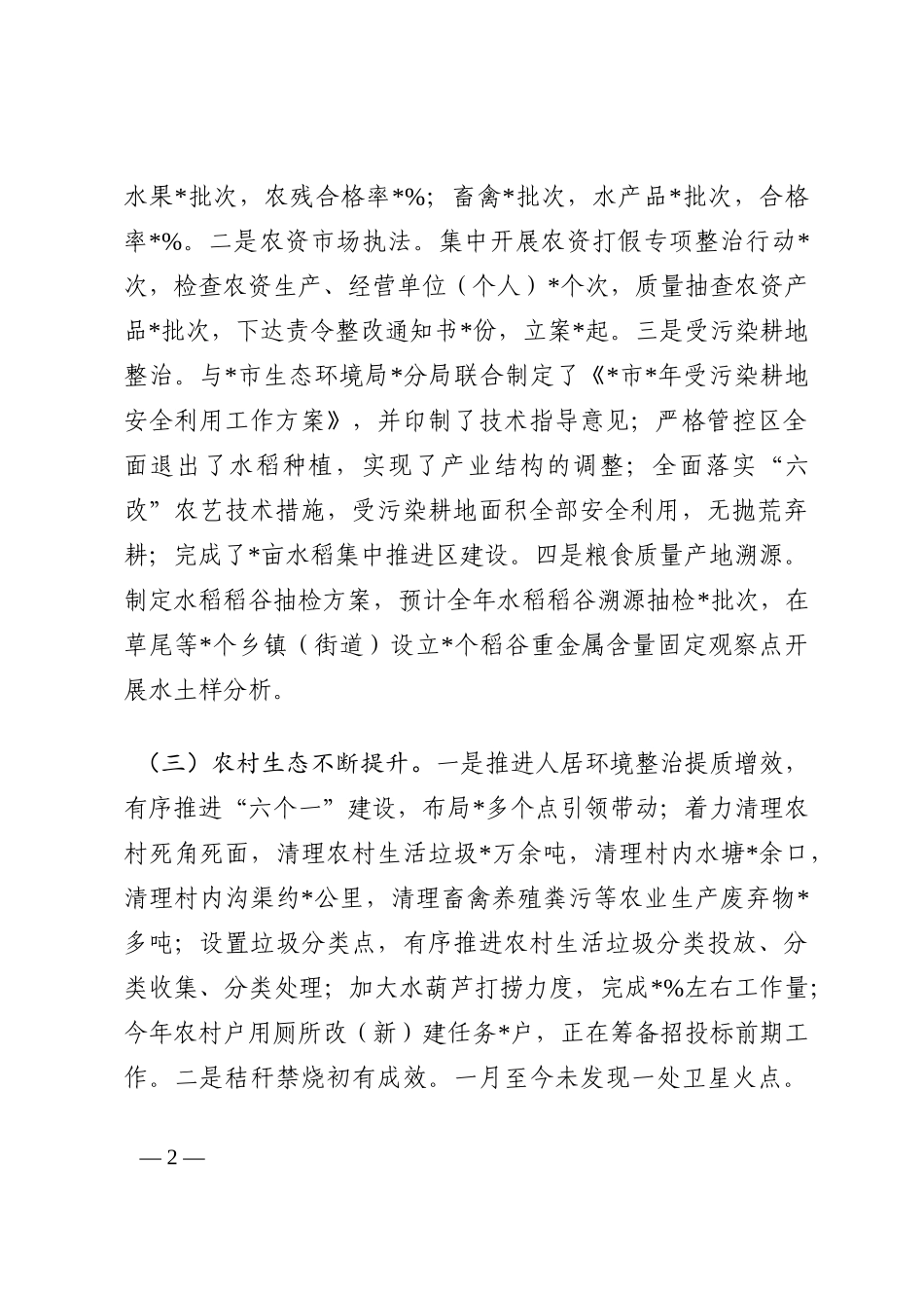 — 1 —农业农村重点工作情况汇报材料今年以来,在市委、市政府的正确领导下,我市农业农村工作按照年初市委农村工作会议的部署,全面真抓实干,全力比学赶超,各项重点工作有序开展。*-*月,*市禁捕退捕、落实...