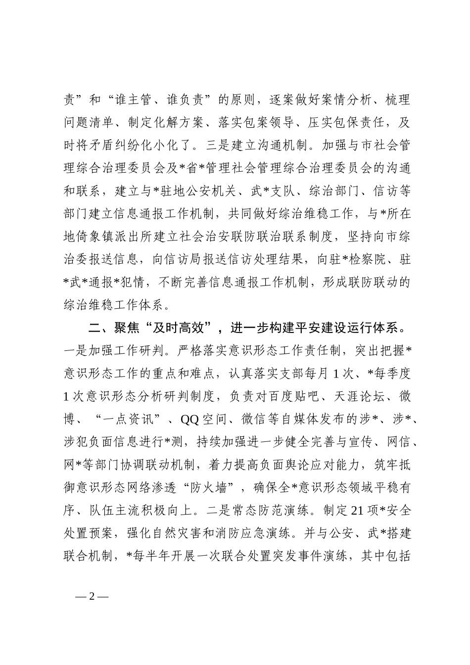 — 1 — 2022 年度市平安建设工作总结今年是党的二十大召开之年,营造安全稳定的政治社会环境,是贯穿平安建设工作的主题主线,也是对平安建设成效的直接检验。一年来,*在市委、市政府的坚强领导下,坚持以...