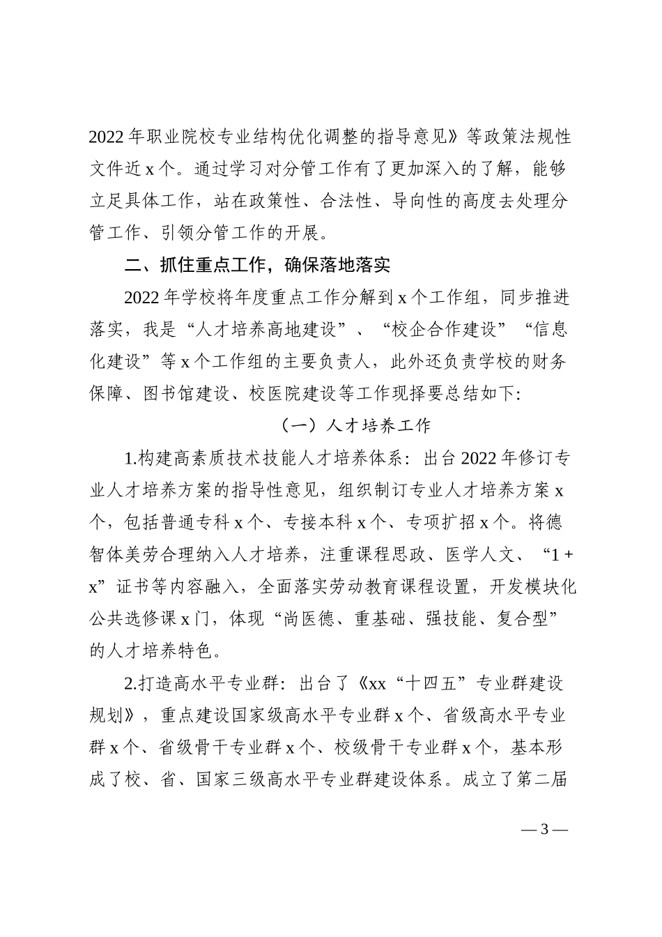 2022年医学职业院校副校长述学述职述廉述法报告范文_第3页