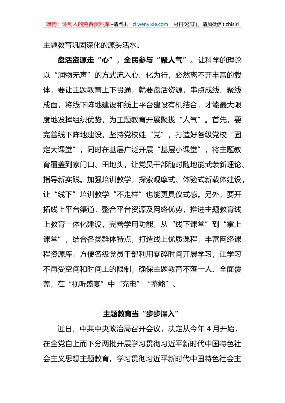 暗狗:体制人的免费资料库 –请点击:zl.wenyixie.com 材料交流群,请加微信 tizhisiri学习贯彻习近平新时代中国特色社会主义思想主题教育心得体会(10 篇)修好主题教育这门“终身课”习近平总书记在参加十四...