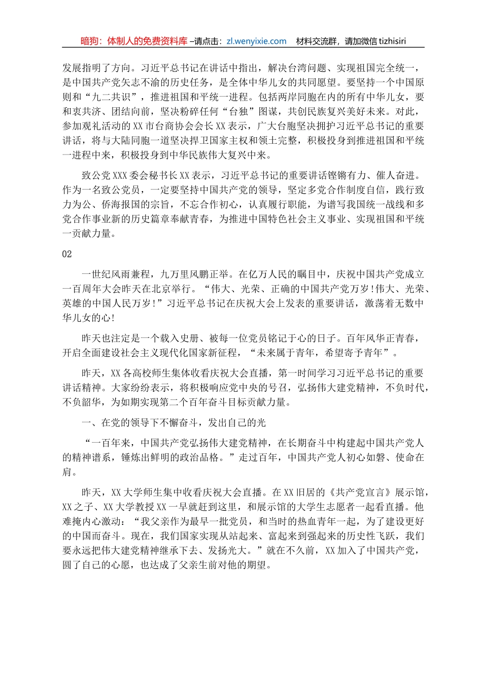 学习庆祝中国共产党成立100周年(七一讲话)讲话精神政务信息、工作简报、新闻简报汇编(10篇)_第2页