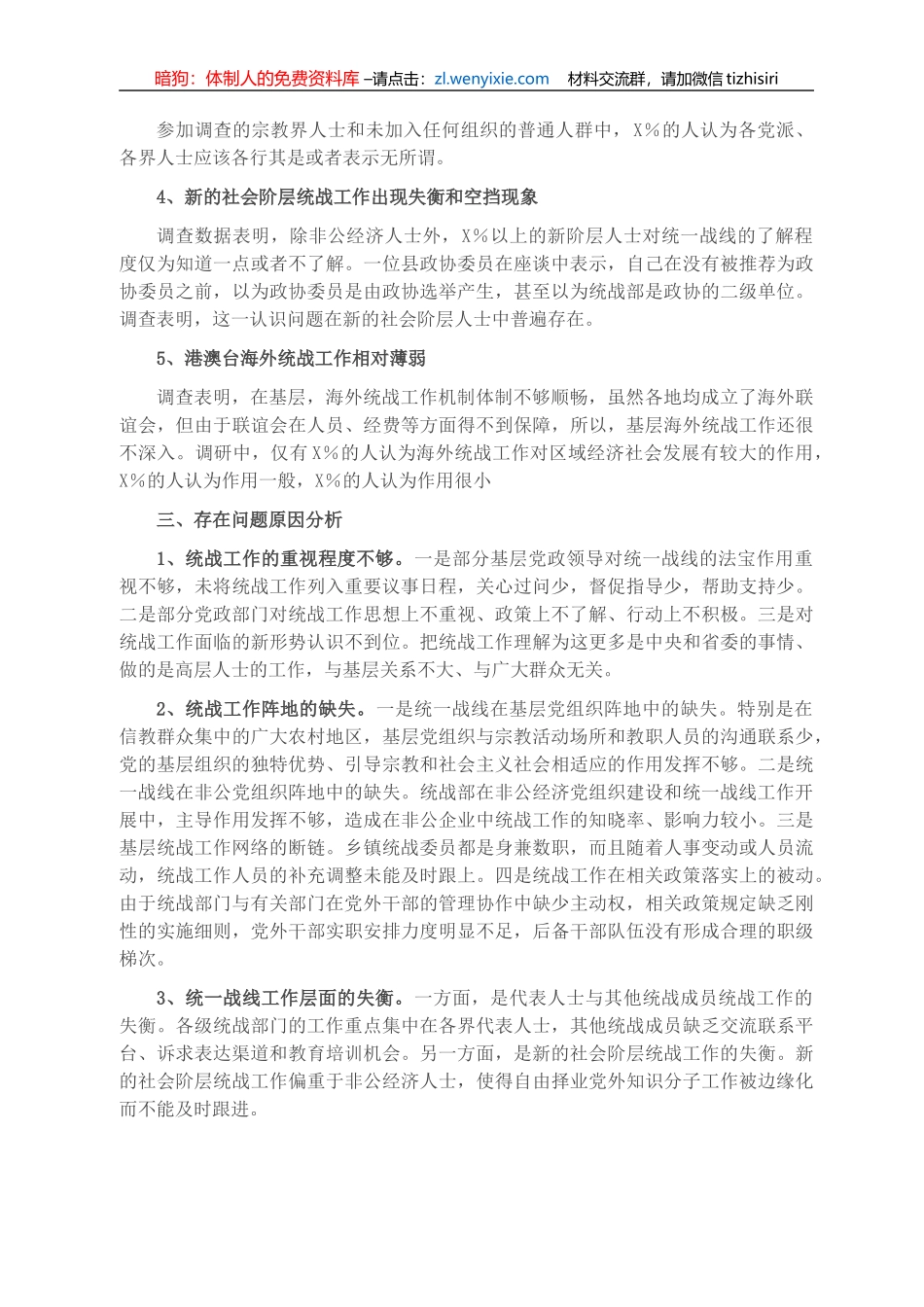 调研报告:新形势下基层统战工作存在的问题及建议_第3页
