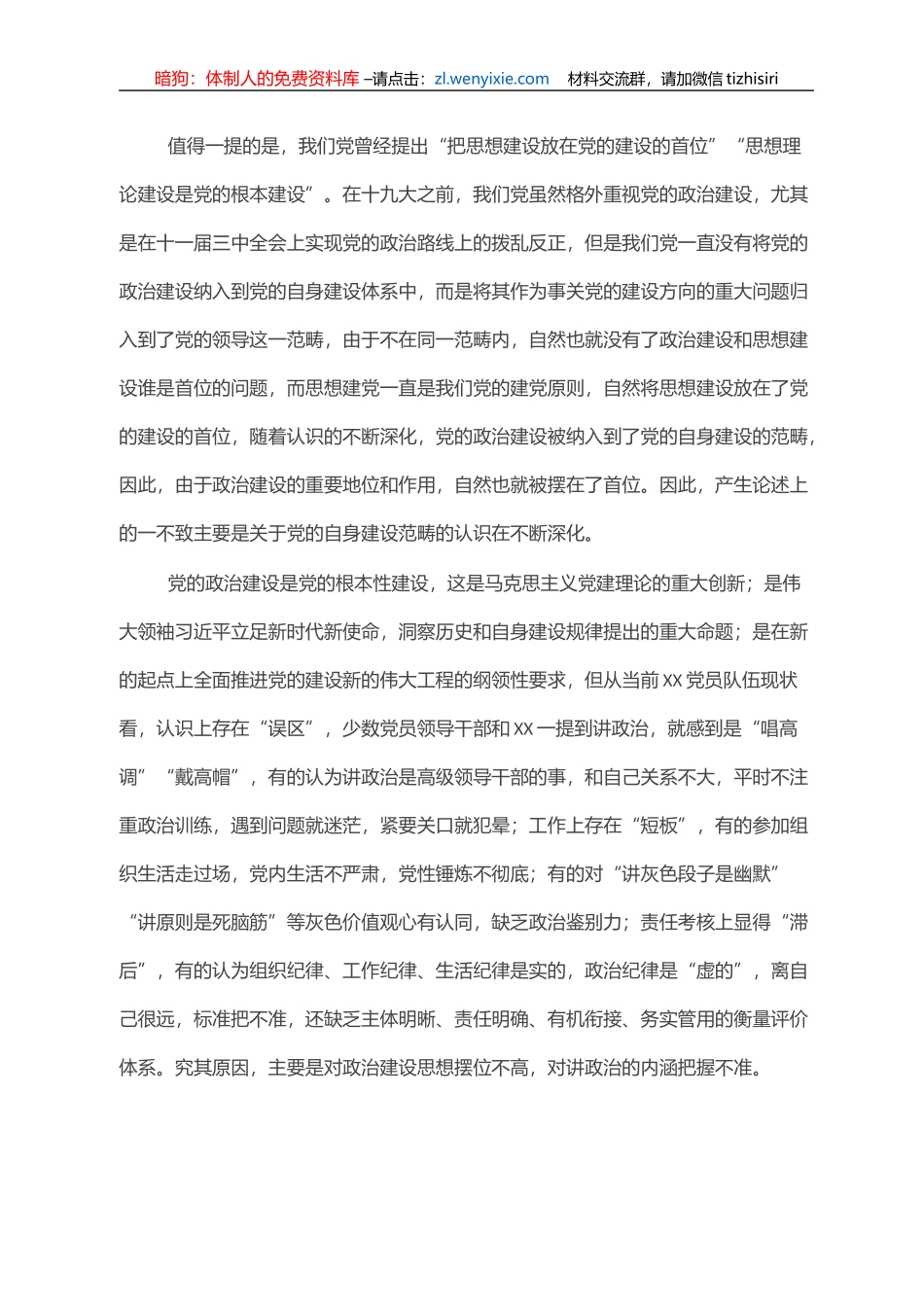 暗狗:体制人的免费资料库 –请点击:zl.wenyixie.com 材料交流群,请加微信 tizhisiri各位领导,同志们:按照培训计划安排,今天我围绕“着眼贯彻全面从严治党治警要求,切实提高政治站位,强化党建引领,抓...