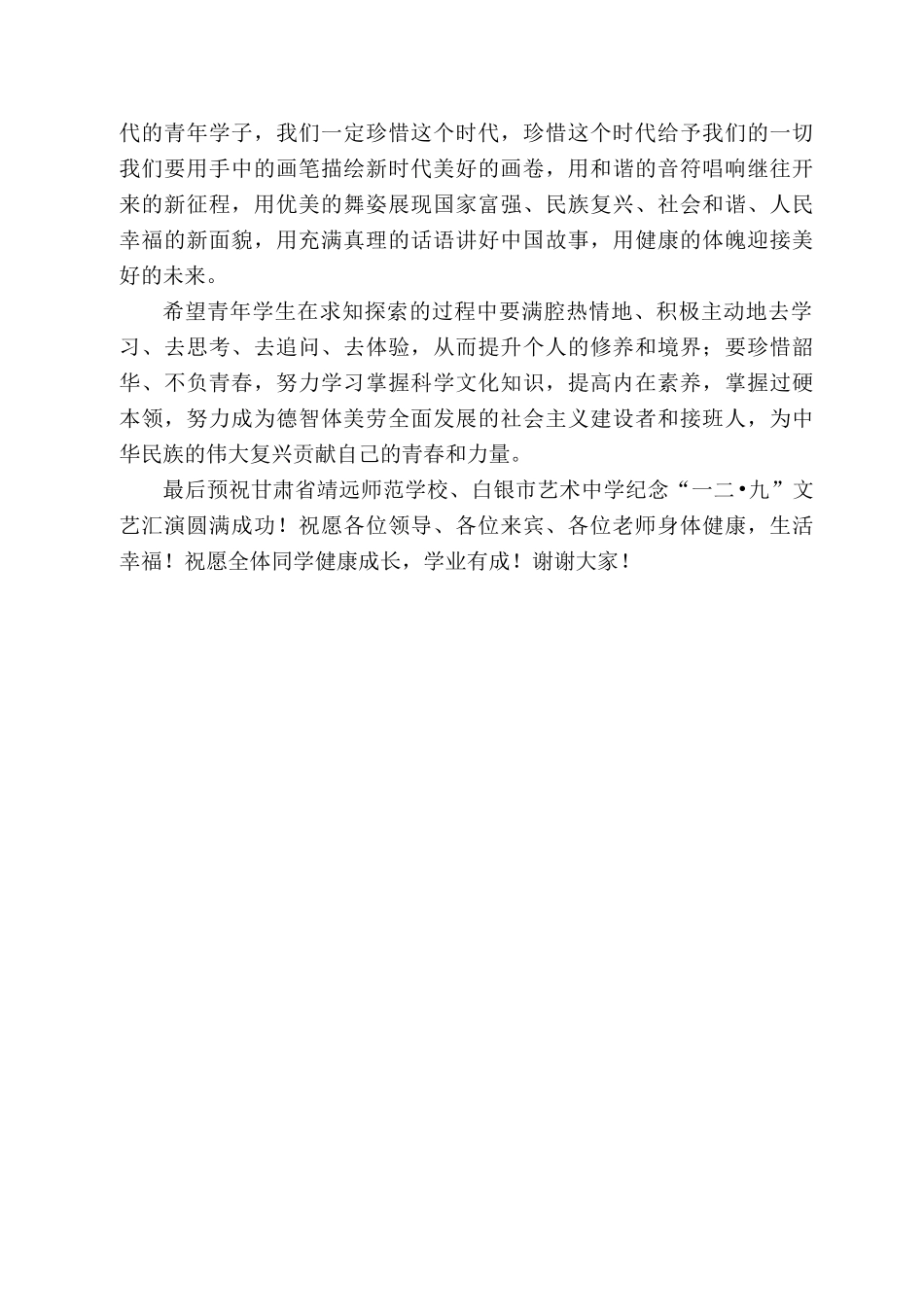 肃省靖远师范学校校长师永波:在纪念一二九运动85周年文艺汇演上的讲话_第2页