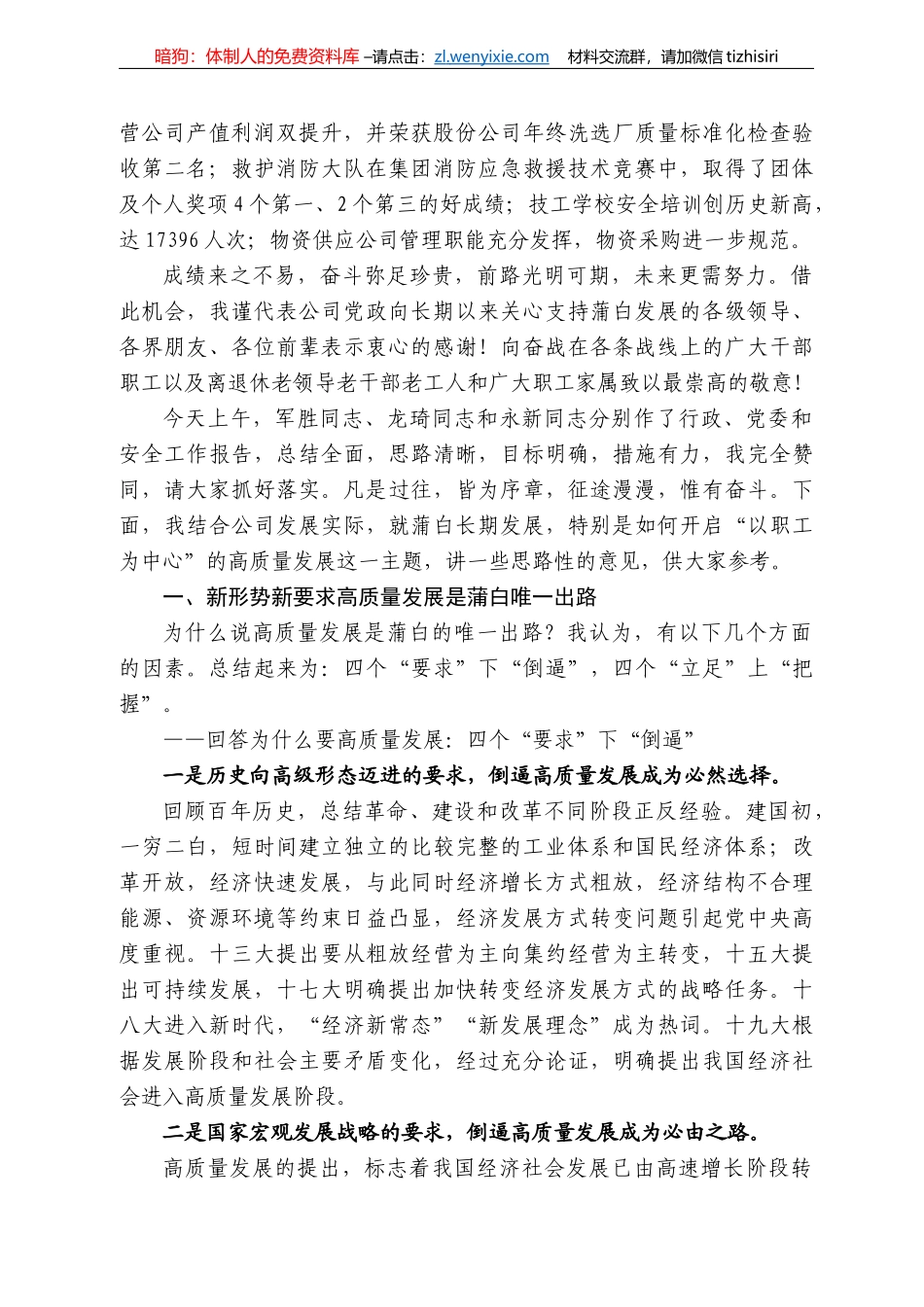 暗狗:体制人的免费资料库 –请点击:zl . wenyixie.com 材料交流群,请加微信 tizhisiri在公司八届五次职代会暨 2022 年党委行政安全工作会上的讲话蒲白煤矿运营公司董事长 问永忠(2022 年 1 月 21...