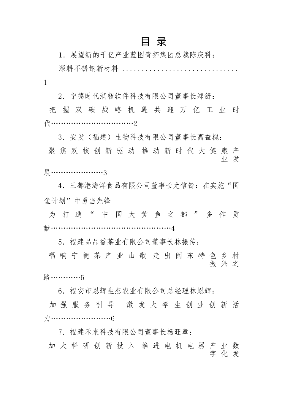 目 录1.展望新的千亿产业蓝图青拓集团总裁陈庆科:深耕不锈钢新材料 ..............................12.宁德时代润智软件科技有限公司董事长郑舒:把 握 双 碳 战 略 机 遇 共 迎 万 亿 工 业 ...