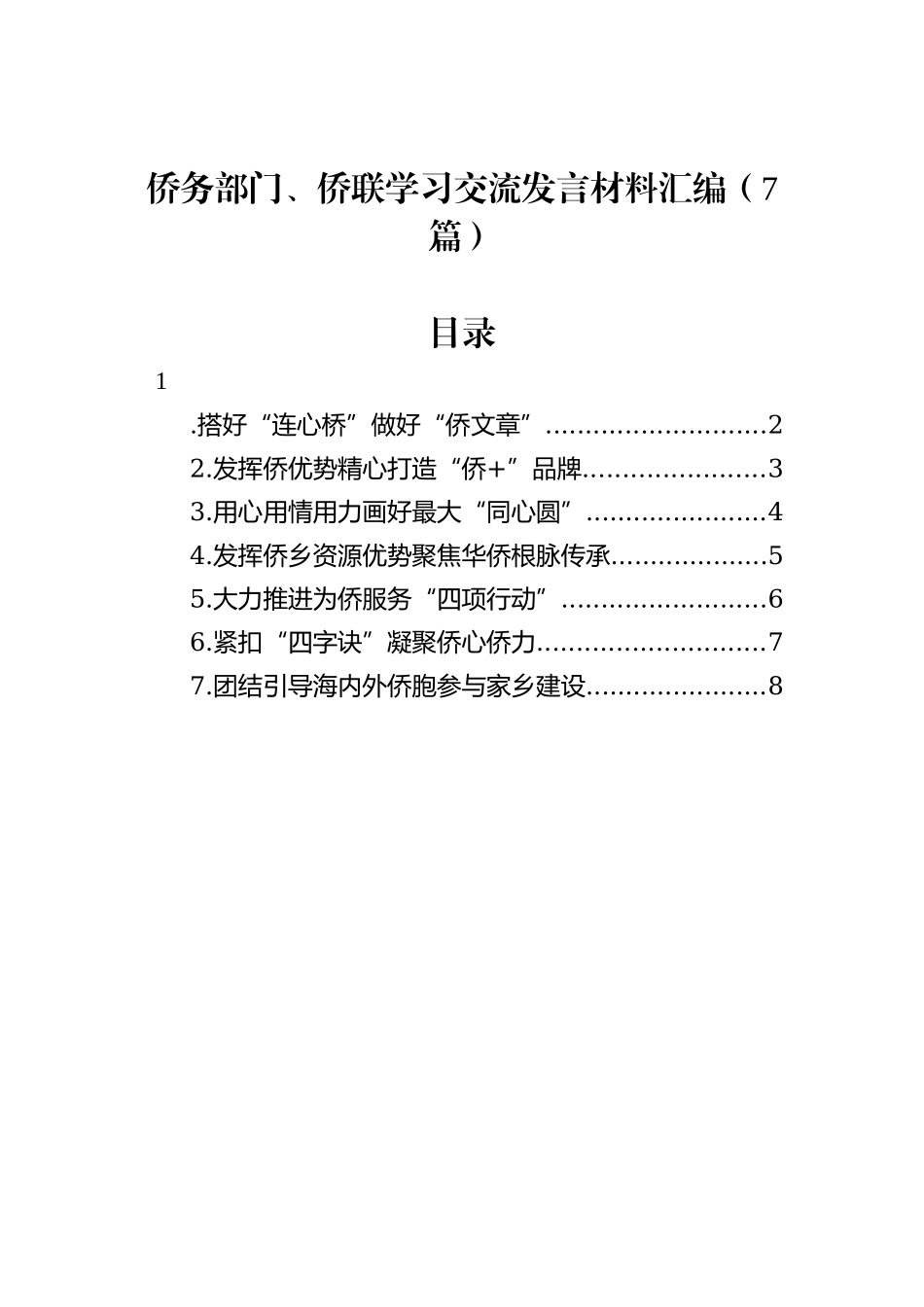 侨务部门、侨联学习交流发言材料汇编(7篇)_第1页