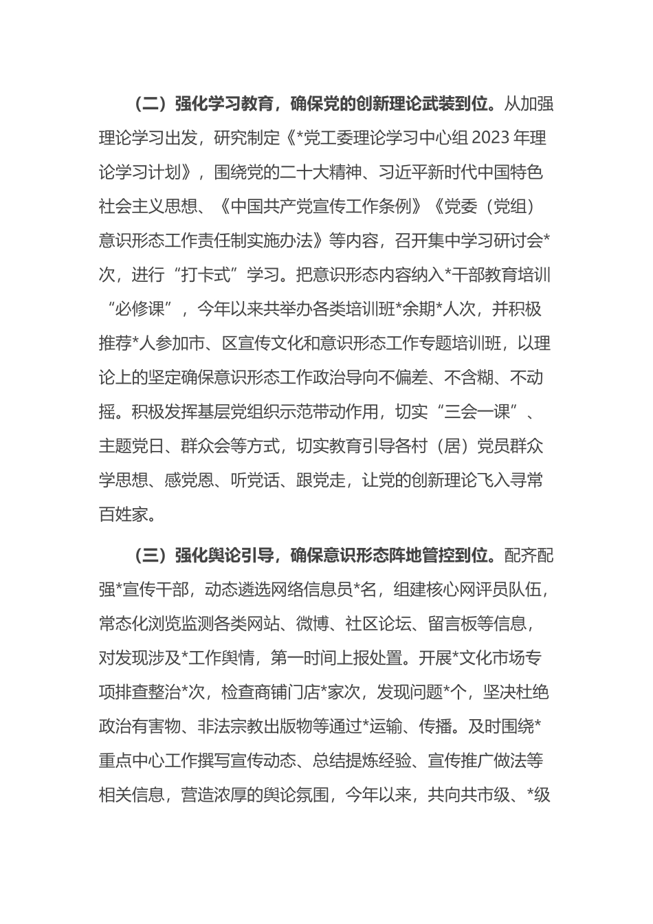 党委(党工委)2023年上半年意识形态工作情况报告(总结)_第3页