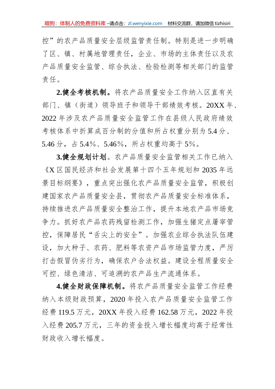区创建国家农产品质量安全县工作情况报告VIP免费