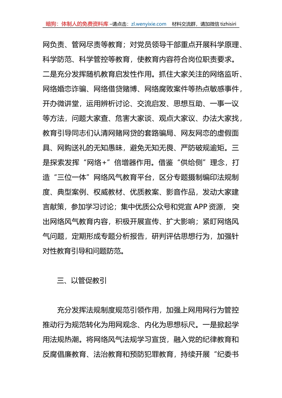 骨干发言:树立体系思维提升教育质效+打赢网络违规违纪问题防范主动仗_第3页