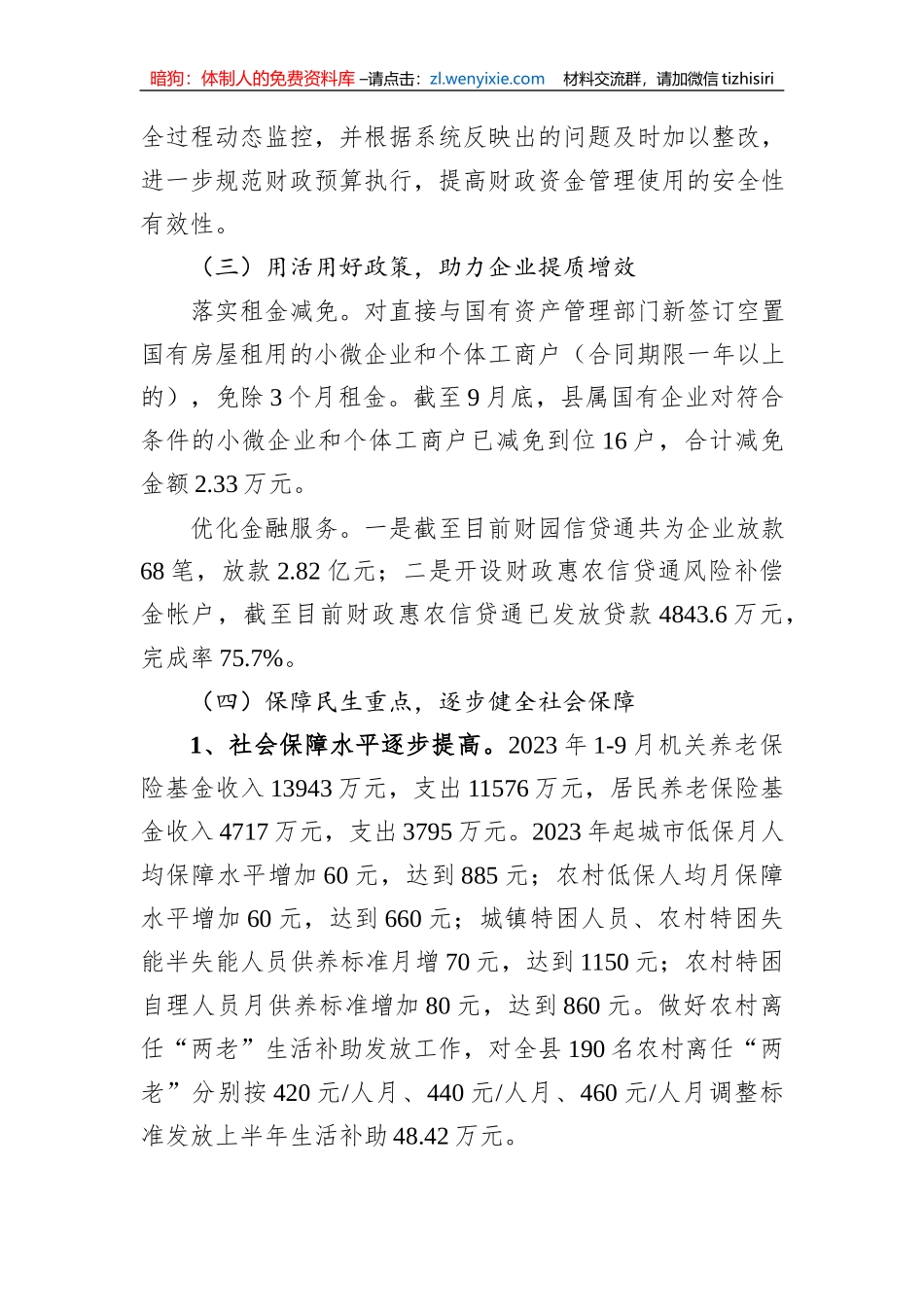 暗狗:体制人的免费资料库 –请点击:zl.wenyixie.com 材料交流群,请加微信 tizhisiri县财政局 2023 年工作总结及 2024 年工作计划2023 年是全面贯彻落实党的二十大精神的开局之年,是“十四五”规划的...