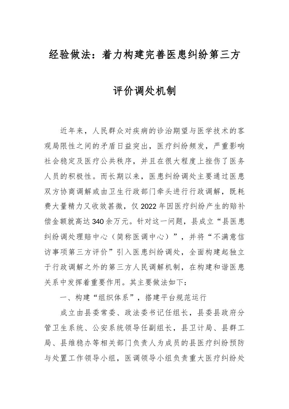 经验做法:着力构建完善医患纠纷第三方评价调处机制_第1页
