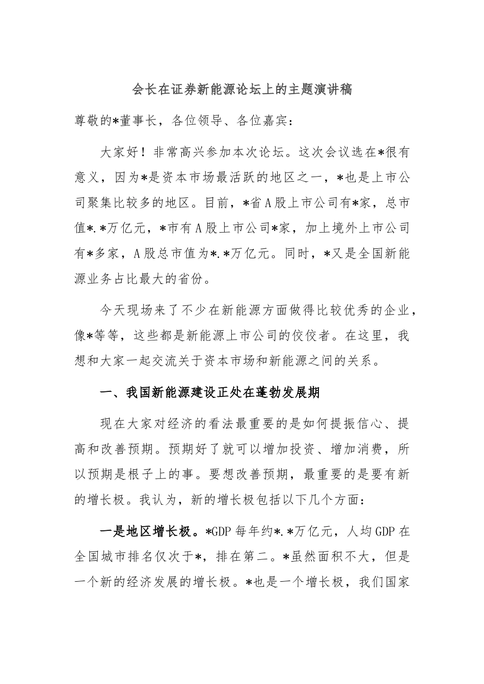 会长在证券新能源论坛上的主题演讲稿_第1页