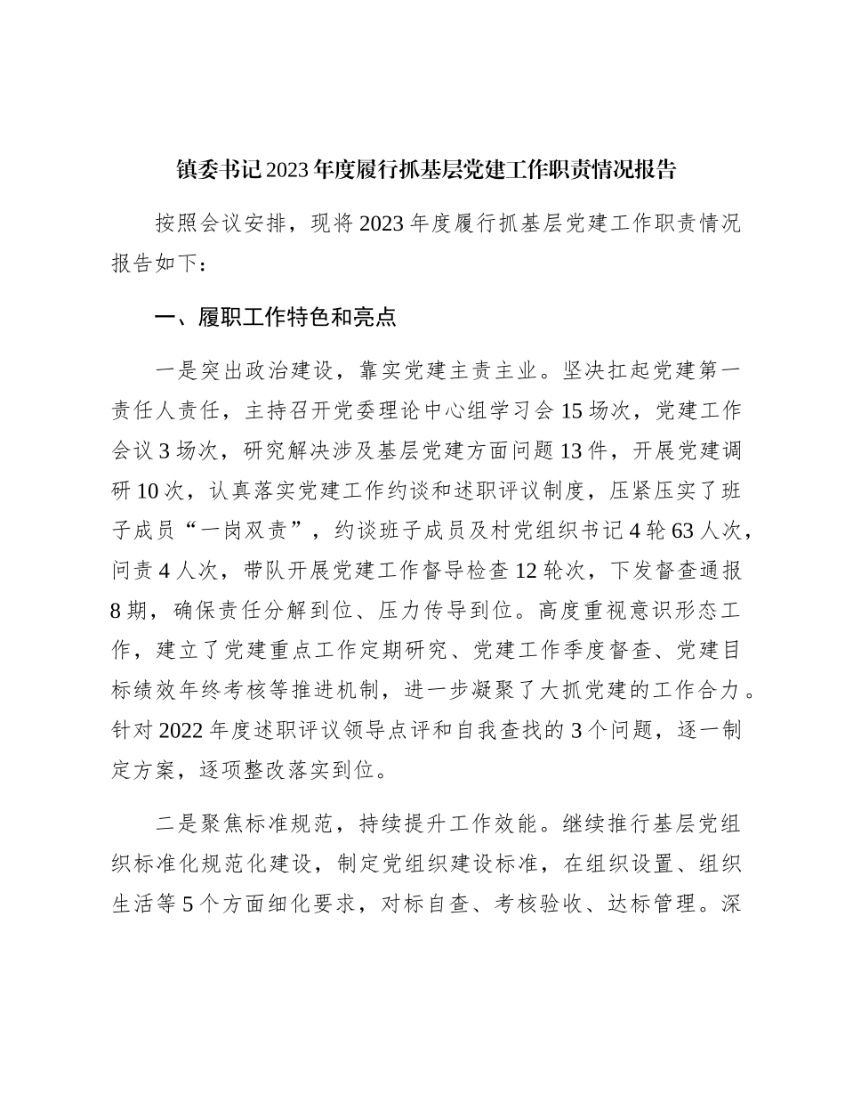 乡镇书记2023年度履行抓基层党建工作职责情况报告3000字(党建述职)_第1页