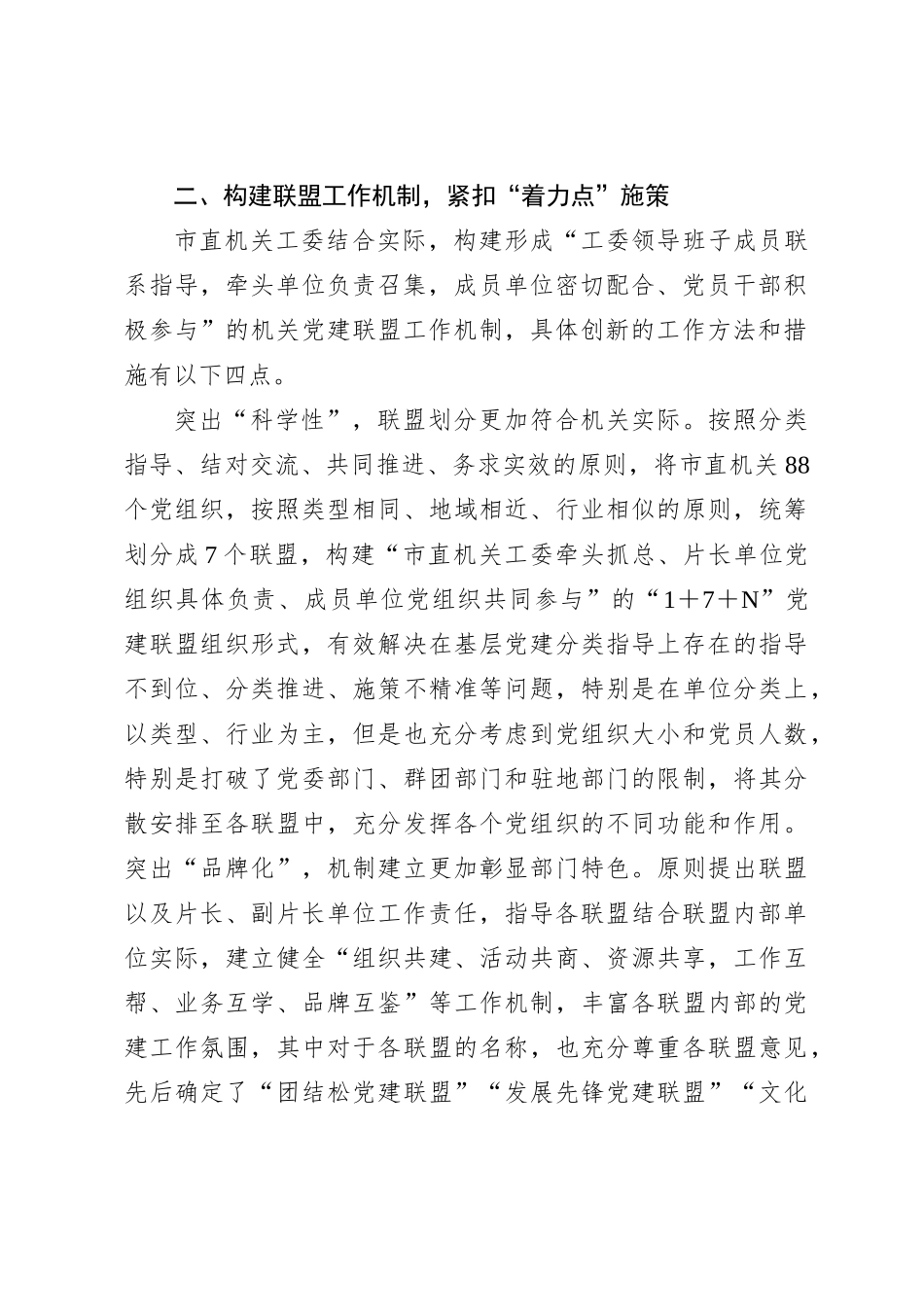 — 1 —在全省机关党建和业务工作深度融合座谈会上的交流发言近年来,市直机关工委坚持以习近平新时代中国特色社会主义思想为指导,紧扣机关党建“围绕中心、建设队伍、服务群众”的核心任务,进一步创新机关党...