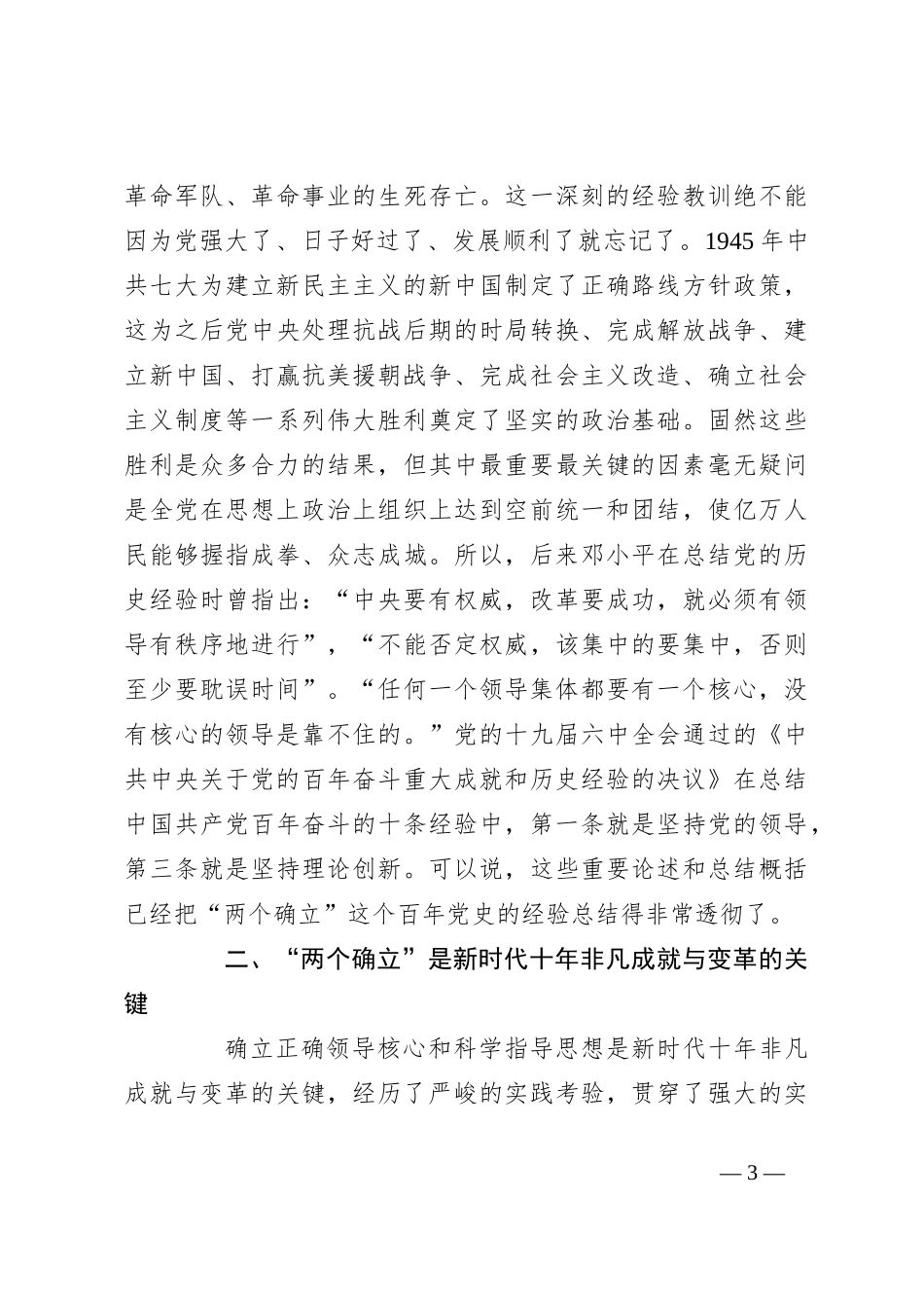 党课讲稿:深刻领悟“两个确立”的决定性意义 为全面建设社会主义现代化国家作出新贡献_第3页
